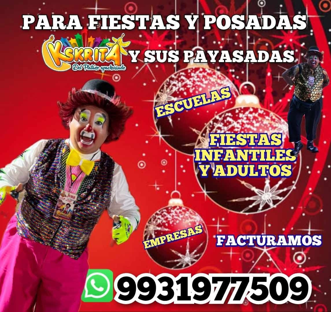 Desde hace 25 años, a Kskrita del Plátano Apachurrado le gusta divertir a chicos y a grandes en diferentes tipos de eventos, poniendo la mejor sonrisa, ofreciendo entretenimiento de calidad para todos.